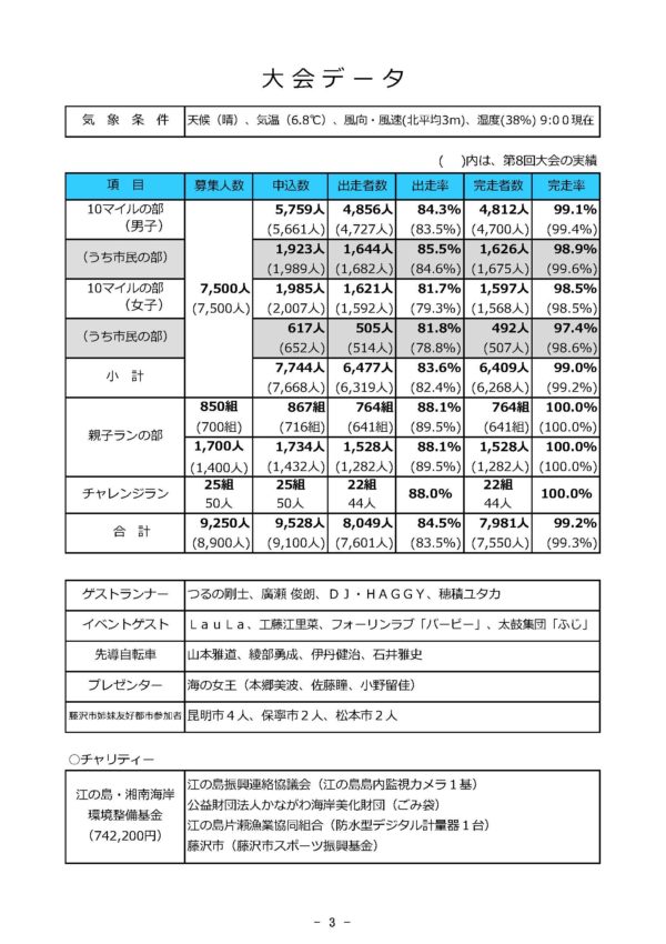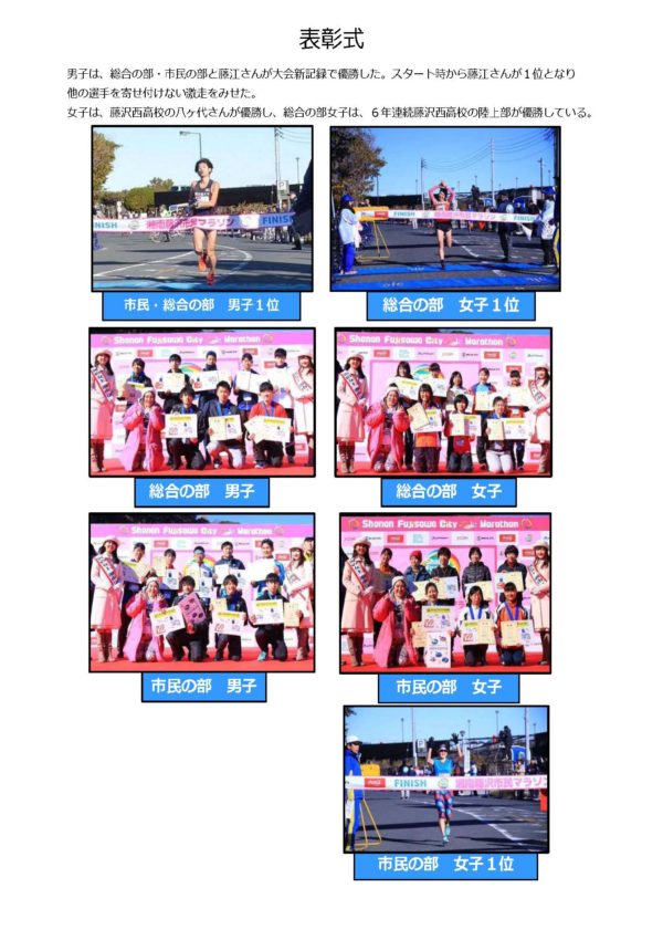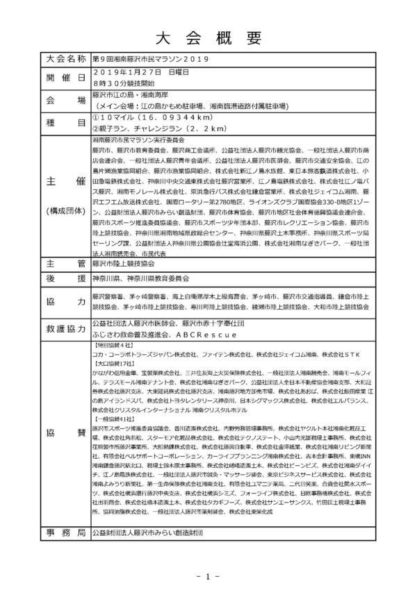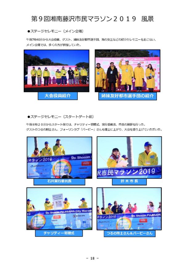 報告が遅くなり申し訳ございません。先日の1月27日(日)に開催されました「第9回湘南藤沢市民マラソン2019」大会報告書が完成いたしました。 下記よりご覧なれますので、是非ご確認ください。